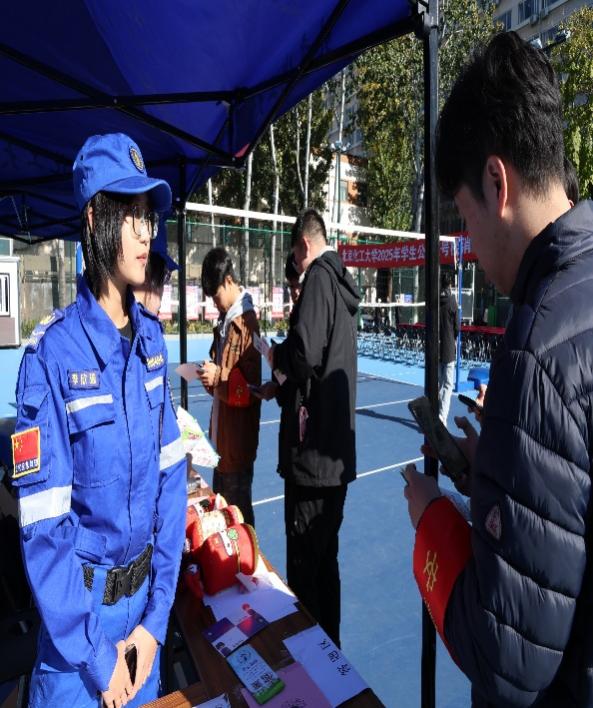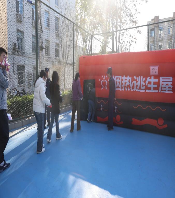 演习现场同步开展了内容丰富、形式多样的体验活动,包括烟热逃生体验、灭火器体验、触电体验、心肺复苏、急救包扎、绳结、水带与水枪连接体验、消防服穿戴体验、消防装备展示讲解、消防知识答题区以及奖品兑换区等。师生通过亲身体验,进一步掌握了消防技能,深化了对火灾风险的认识,在实践互动中将“生命至上、防患未然”的理念深植于心。